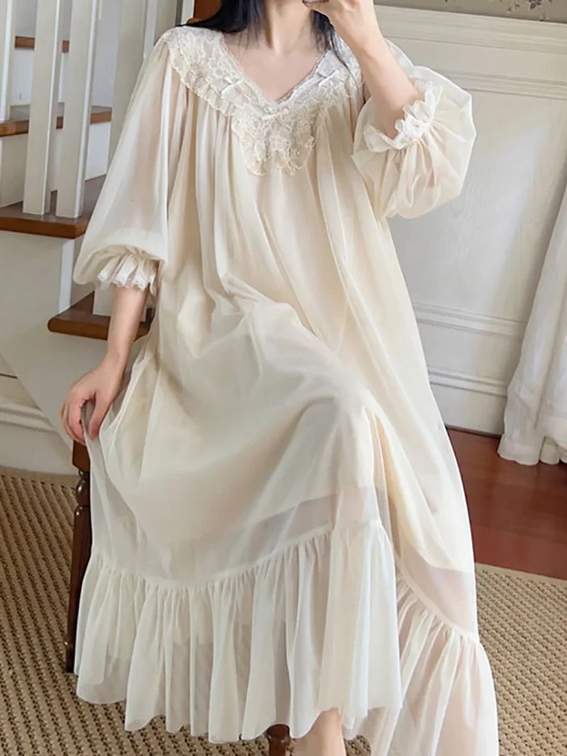 French Fairy Mist Mesh Sleepwear Nightdress Women Pure Cotton Fantasy Robe Princess Ruffles Dress Spring Victorian Nightgowns WholesaleBuy Directly From Vintage Nightwear Store. Enjoy ✓Free Shipping Worldwide! ✓90 Days Buyer Protection. ✓Easy Return. ✓Money Back Guarantee.